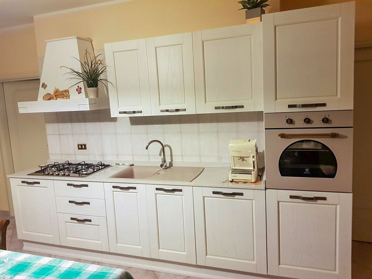 Cucina Epoque 2019-05-25T02:43:28+00:00 Maggiori informazioniCucina Epoque con anta a telaio in legno decapato avorio con lavello in fragranite avena. Forno e cappa riprodotti in vecchio stile. Maniglia semplice e delicata. Zoccolo con cornice perimetrale.CondividereFacebook cinguettio LinkedIn Google + E-mail WhatsApp